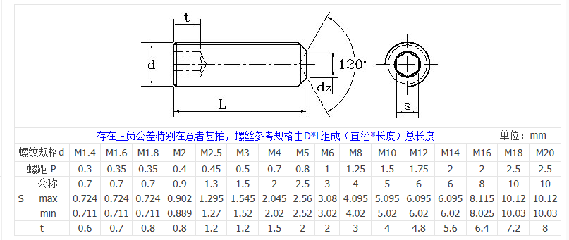 Inner hexagonal headless screw