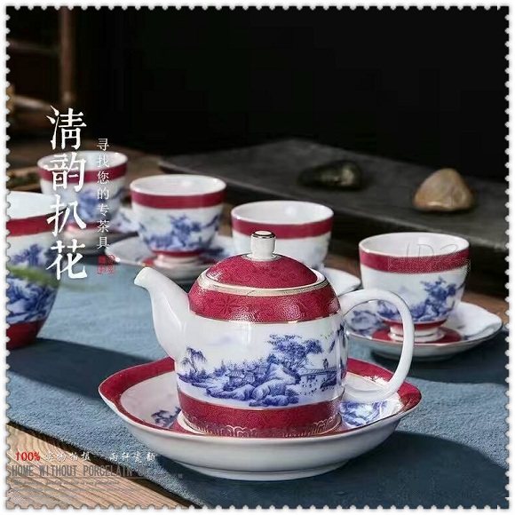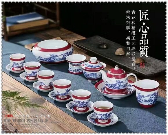 Great value recommendation Jingdezhen ceramics carmine red grilled flower kung fu tea set complete set of tea set gifts porcelain ornaments special offer