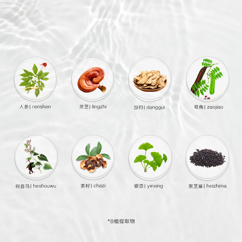 Eight-rooted essences for recuperation of a shampoo-moisturizing cream-moisturizing