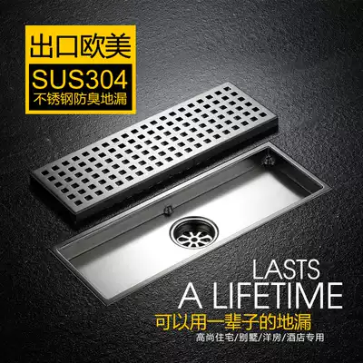 Bathroom powder room deodorant long floor drain Stainless steel shower room rectangular long lengthened shower large displacement insect-proof