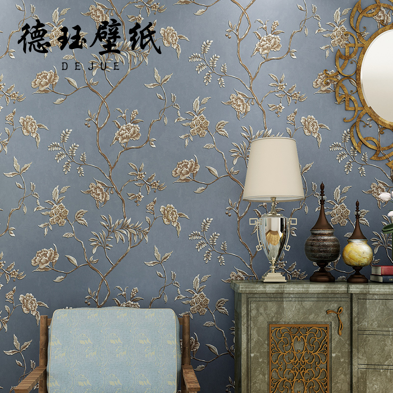 Retro American Wallpaper Field Flowers Birds Unwoven Fabric Light Lavish Living Room Bedroom Background Wall Eurostyle Wall Paper Flowers Luxury