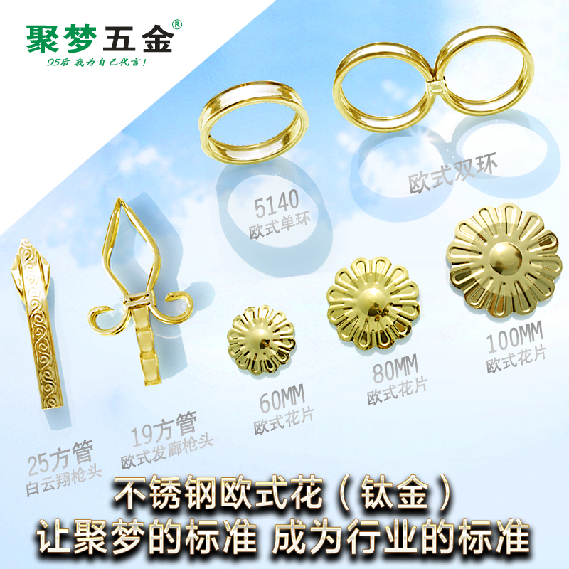 25 square tube Bai Yunxiang gun head (304) titanium gold