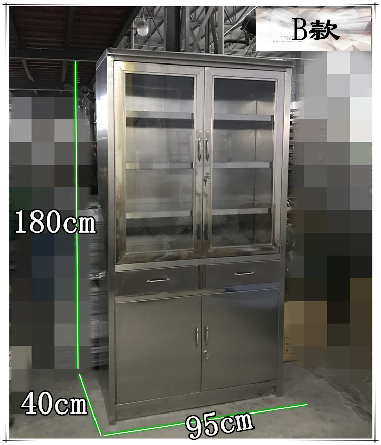 Stainless steel four-door equipment cabinet (A) stainless steel four-door double drawer equipment cabinet (B) can be customized other sizes (Model A) stainless steel four-door (304 material)(B) four-door double-pumping