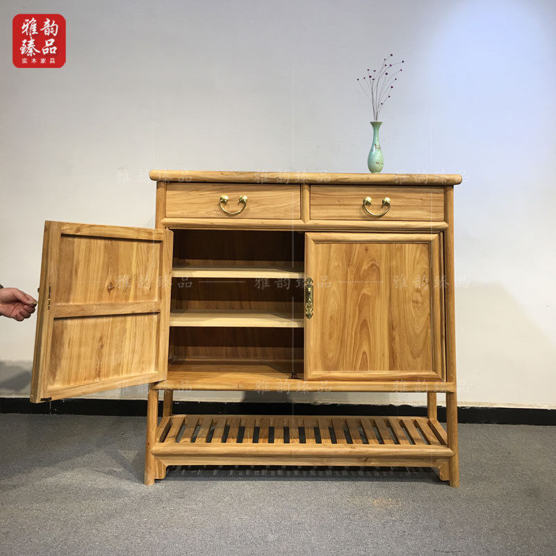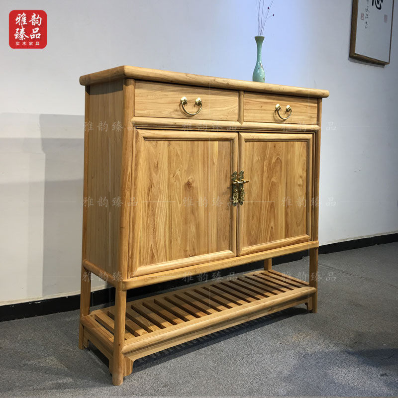 Old elm new Chinese style home shoe cabinet porch cabinet all solid wood paint-free lockers custom-made Zen furniture customization