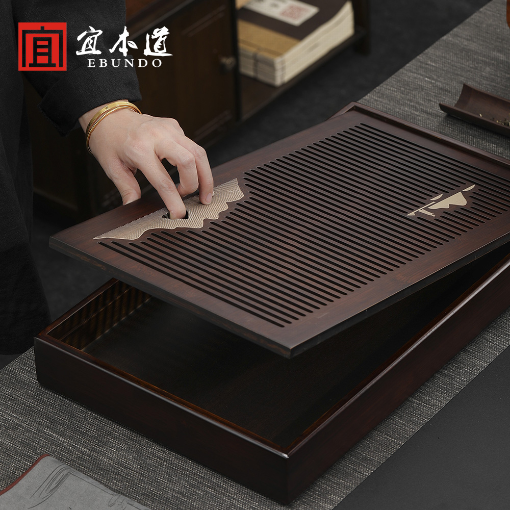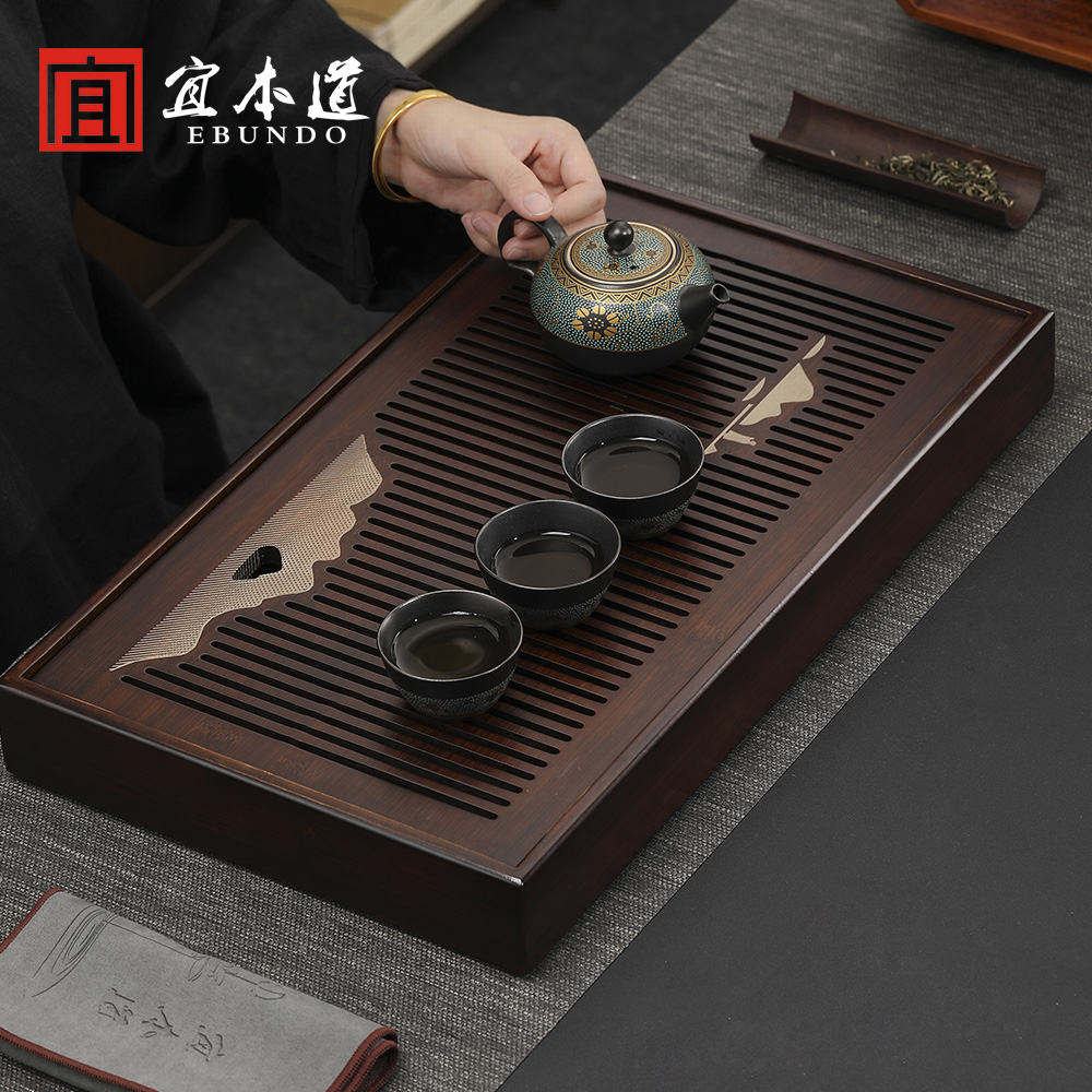 Meng Zongzhu - Bamboo Zhiyun Small 50 5*12 5*4 5cm Small Walnut Color Straight Side Mountain Outer Mountain Water Tea Tray Medium Walnut Color Straight Side Mountain Wai Sheng Water Tea Tray Large Hu