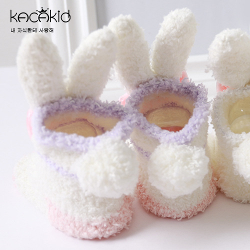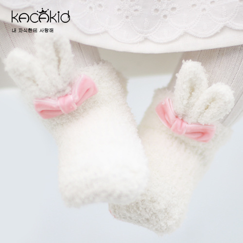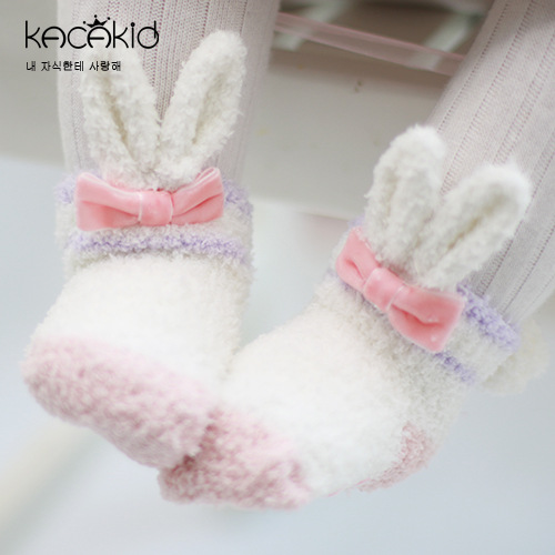 Autumn Winter Butterfly Knot Coral Suede Small Rabbit Long Ears Baby Socks Children Thickened Warm Non-slip Small Socks