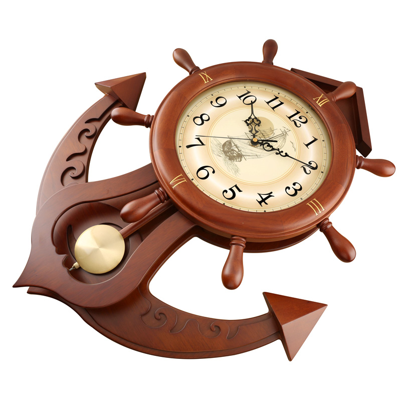 Maple Leaf Creative Hanging clock Living room European style solid wood clock ship rudder mute clock modern hanging watch quartz clock table-Taobao