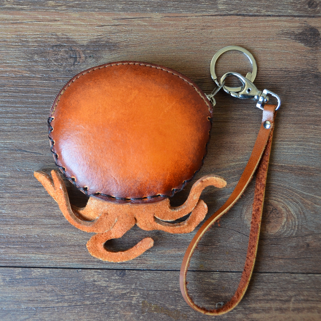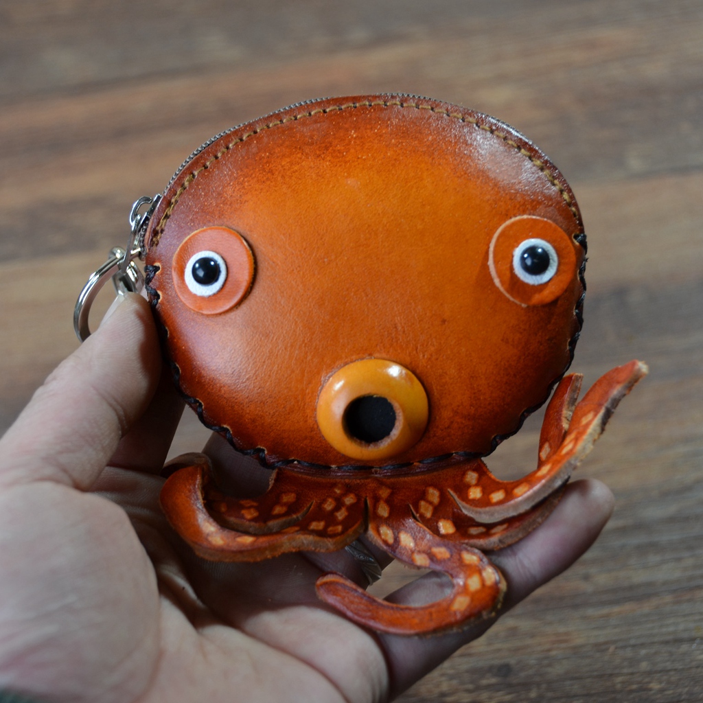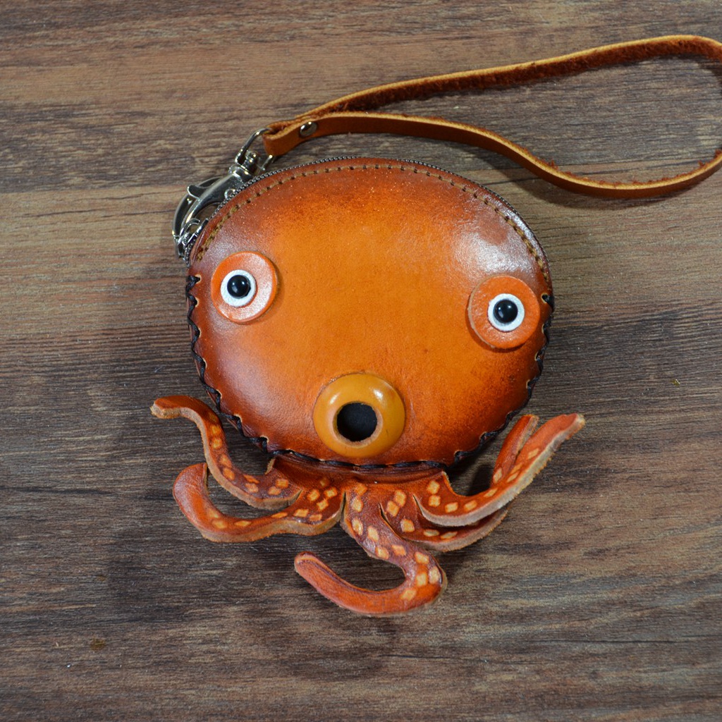 Handmade Genuine Leather Zero Wallet Cartoon Coin Bag Creative Cow Leather Small Wallet Octopus Small Bag Key Bag Pendant