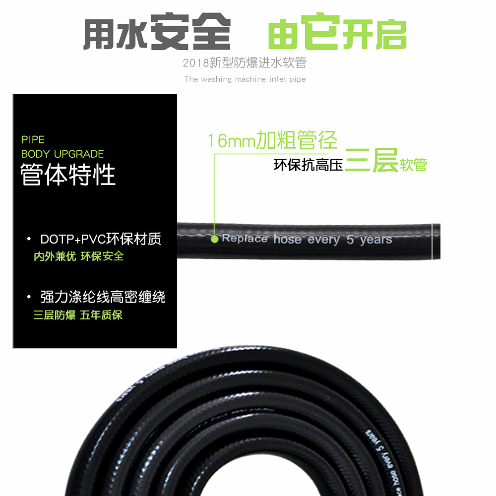 Thickened dishwasher inlet pipe Water inlet hose 4 points threaded joint Explosion-proof for Haier Panasonic Midea
