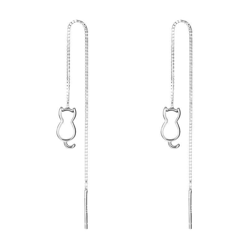 Stunning 925 pure silver ear necklace South Korean fashion Jane about cute little cat fish bone pendant stream Sulong version of the ear chain woman