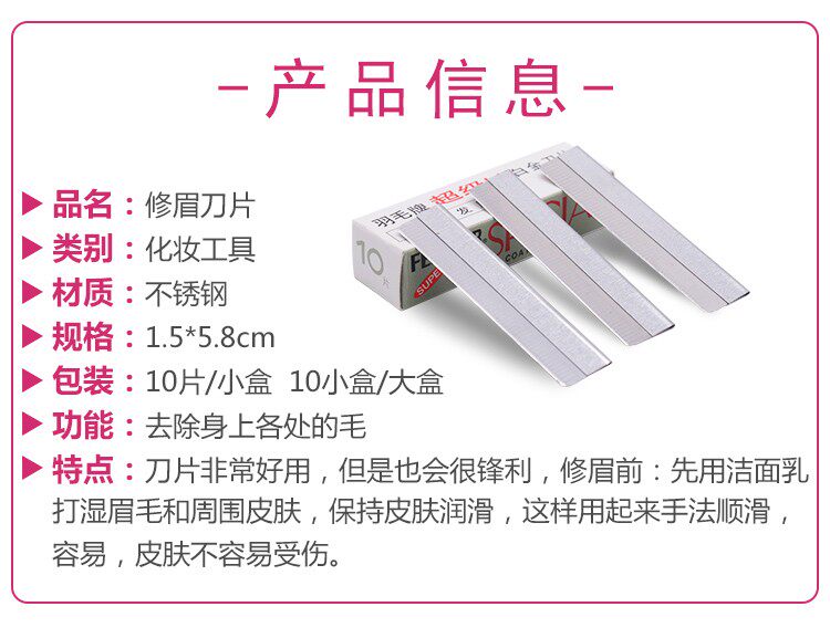 Eyebrow blade 20-piece (2-box) Eyebrow blade 50-piece (5-box) Eyebrow blade 100-piece (large box)