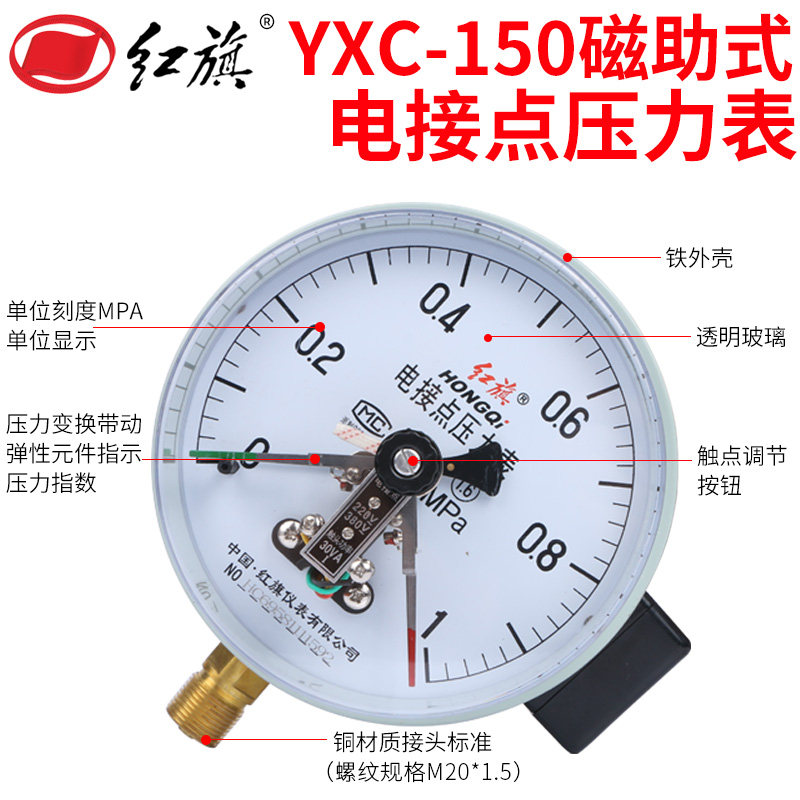Manufacturer direct red flag meter magnetic aid type electric junction pressure meter YXC-150 vacuum negative pressure gauge 1 6MPa