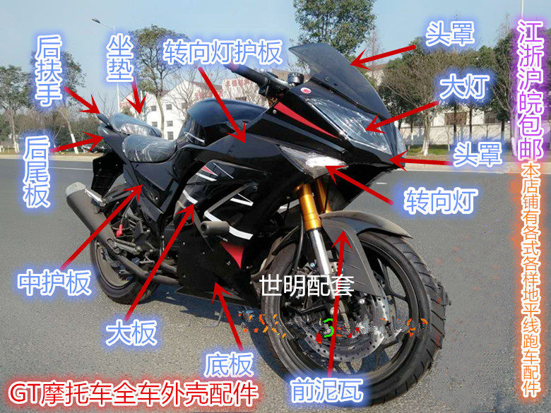 Hood front mud tile large plate steering light guard plate base plate middle guard plate small guard plate rear tail plate glass living room light steering light rear mirror Brake assembly Paint parts Set of LCD instrument Front shock absorber Rear mud plate dashboard fuel tank stickers