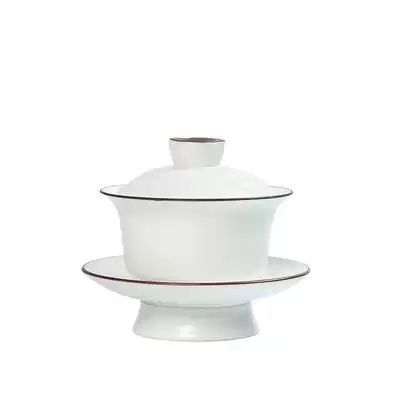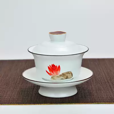 Fat white matte white porcelain cover bowl Teacup tea bowl Large Kung Fu tea set Hand-painted ceramic cover bowl Teacup Sansai cup