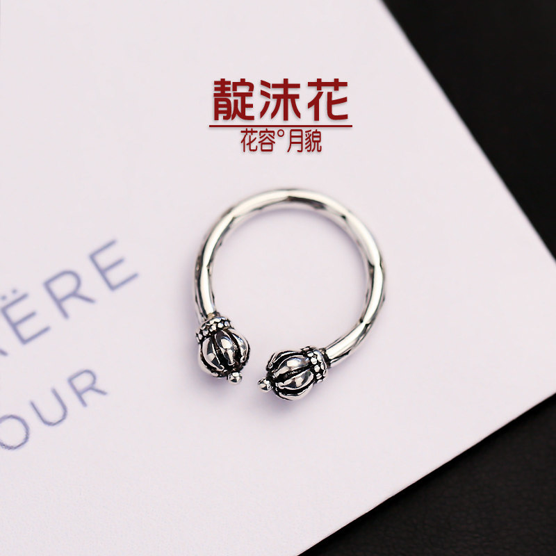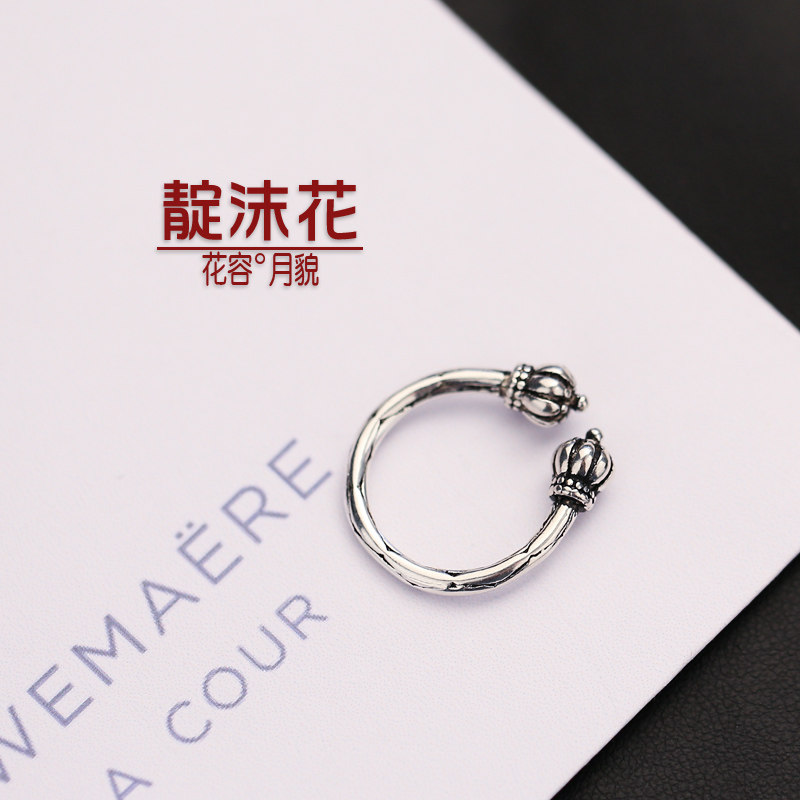 Korean version s925 pure silver crown ring retro fashion joint withdrawal sweet and index finger ring tail ring ornament female