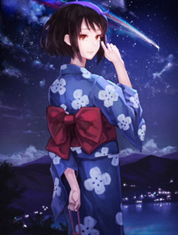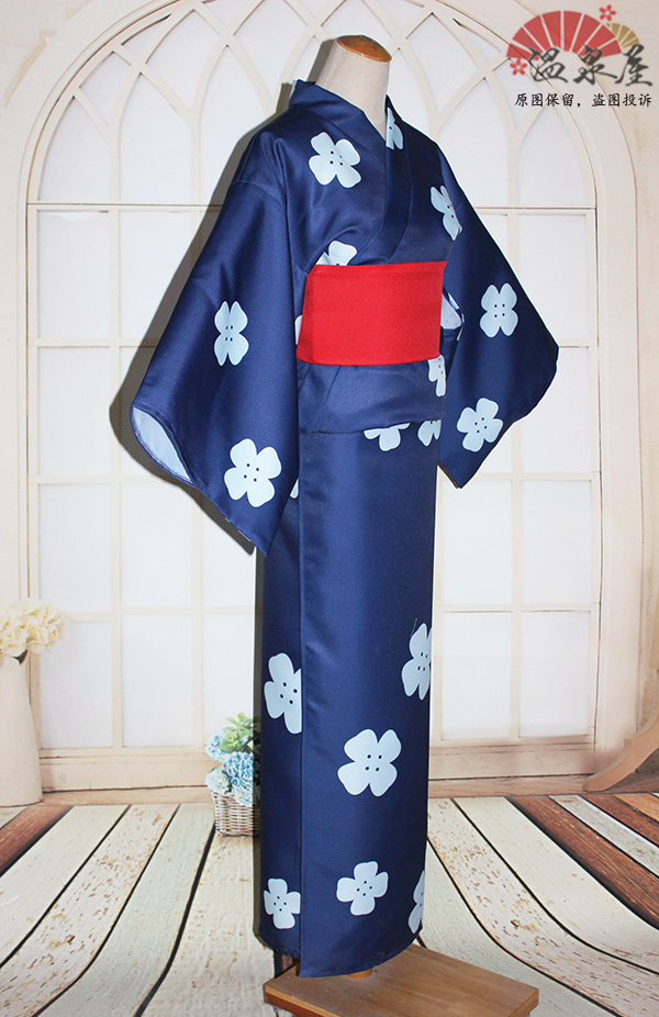 Spot sample clothes 1 set your name Gongshui three leaves cosplay blue four-leaf printing kimono bath wig