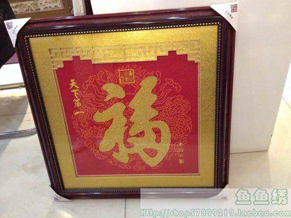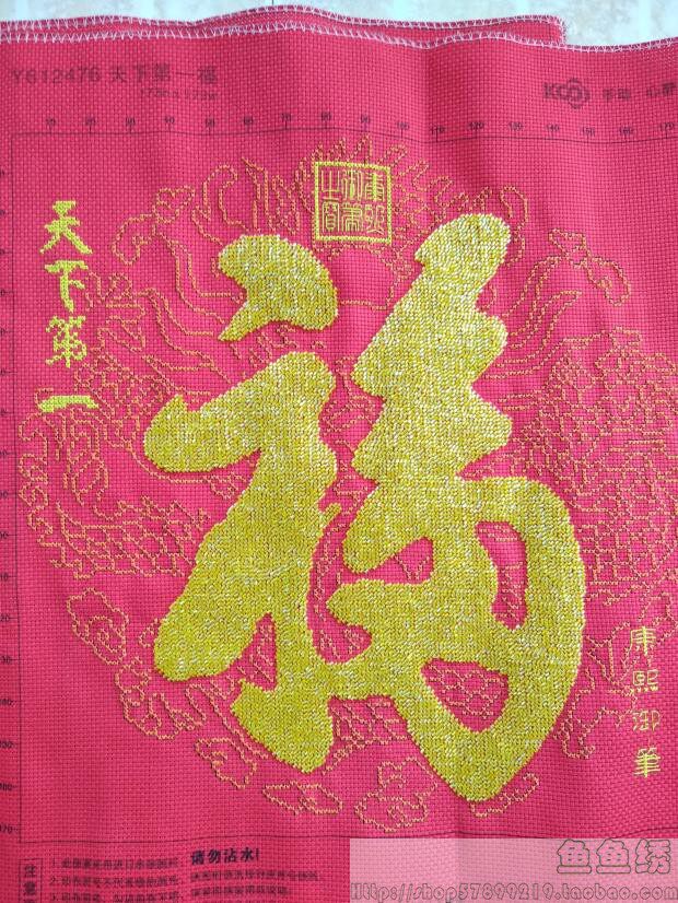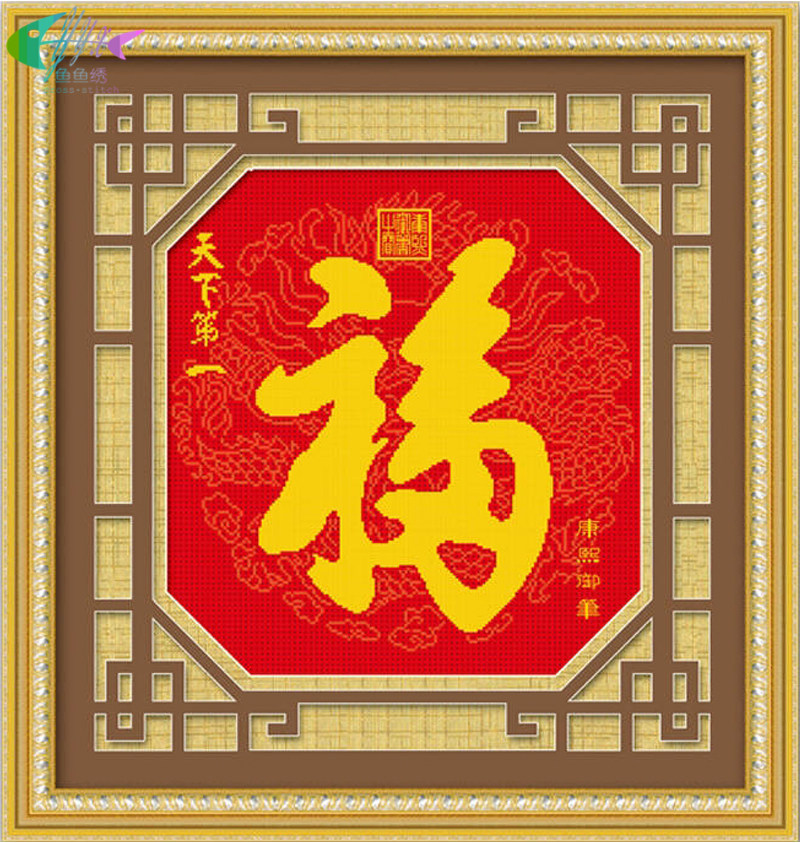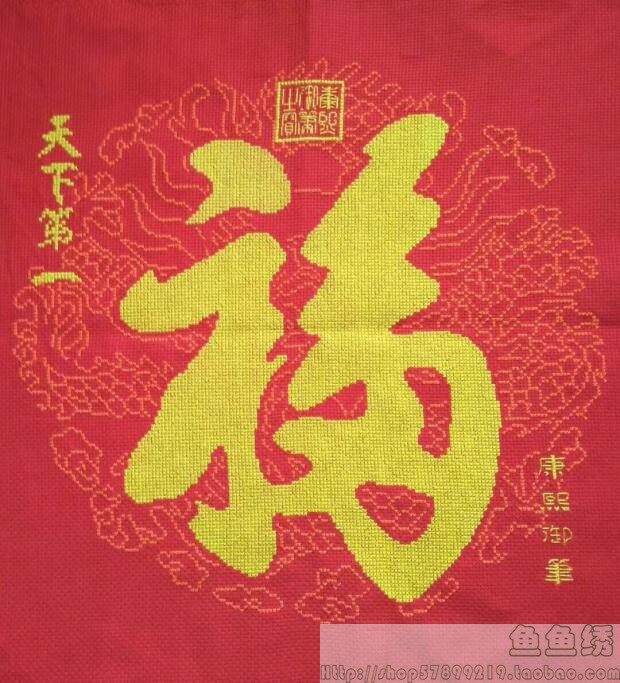 Pure cotton thread printing cross stitch can be customized pure handmade finished living room porch Kangxi royal pen the first blessing in the world