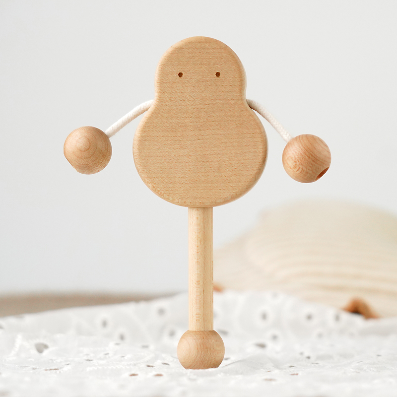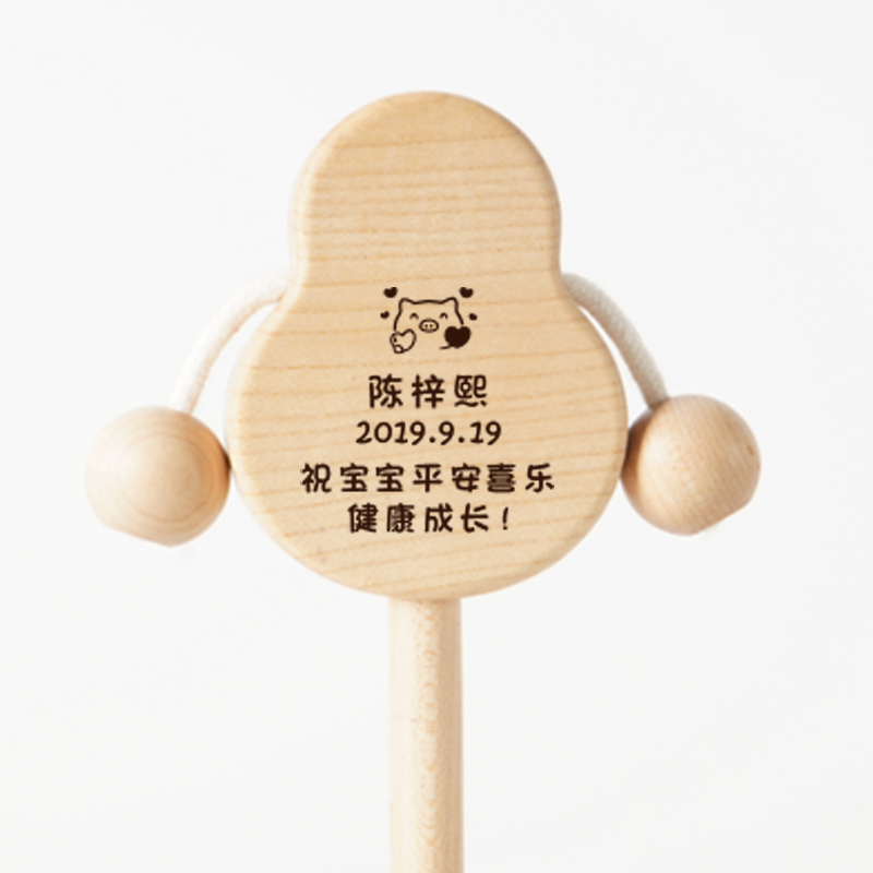 Five-piece set - engraved five-piece set - no engraving little snowman rattle penguin small tooth board smiley face rattle six-pillar rattle classic wooden cart