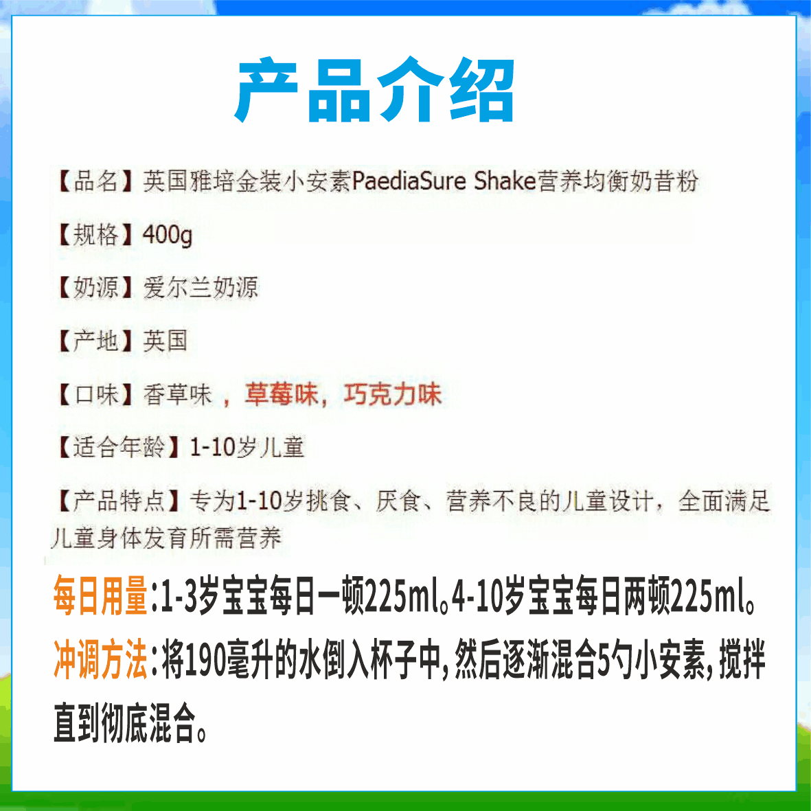 Spot UK Abbott Paediasure Xiaoanmin 1-10 year old baby to grow milk powder 850g Three flavors