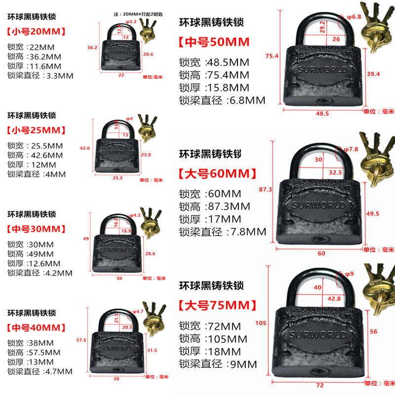 (not open) iron lock 20MM (not open) iron lock 25MM (not open) iron lock 30MM (not open) iron lock 40MM (not open) iron lock 50MM (not open)