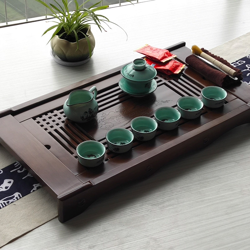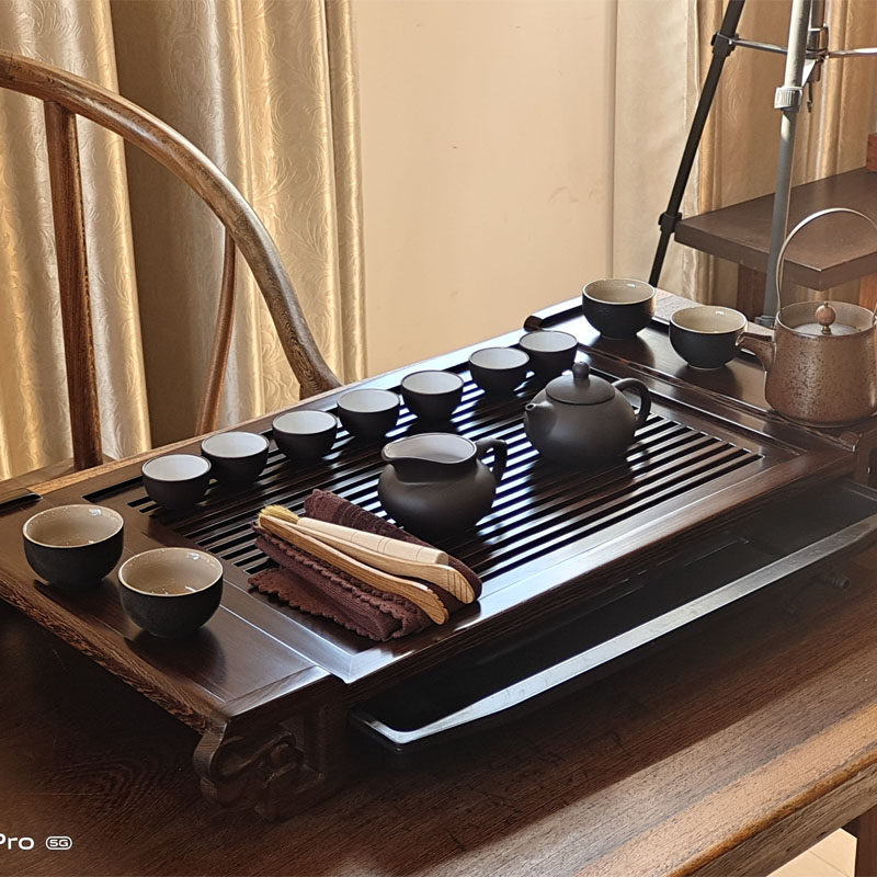 Large tea plate solid wood drawer type wooden modern tea table household simple new Chinese drainage water tea tray
