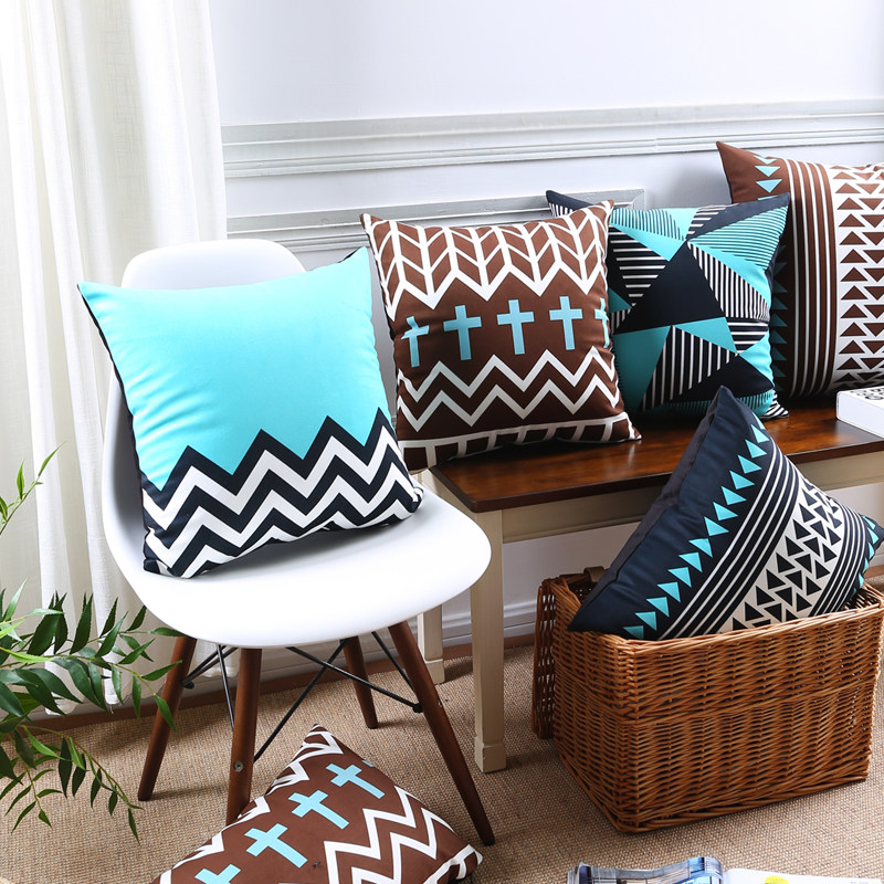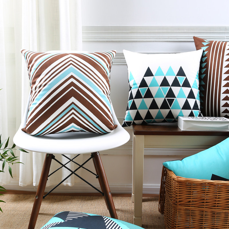 Pine cone house Nordic light and elegant geometric blue sofa pillow cushion soft and comfortable super soft flannel pillow waist pillow