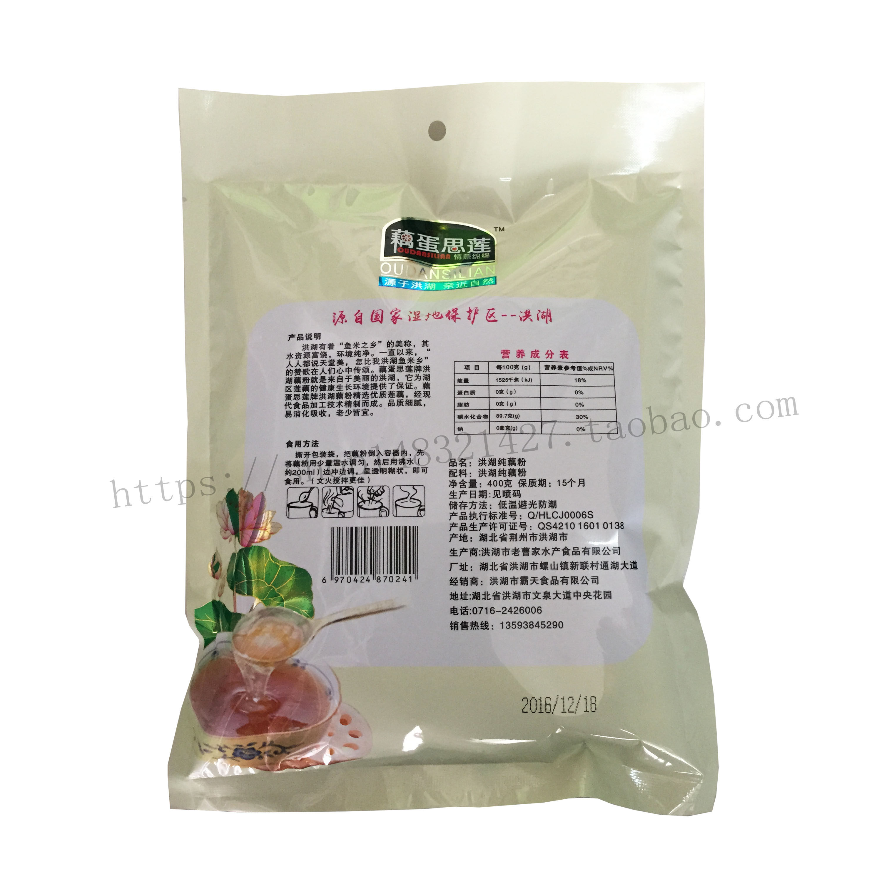 Hubei Honghu specialty lotus root egg Silian Honghu no added pure lotus root powder 400g fake one penalty ten