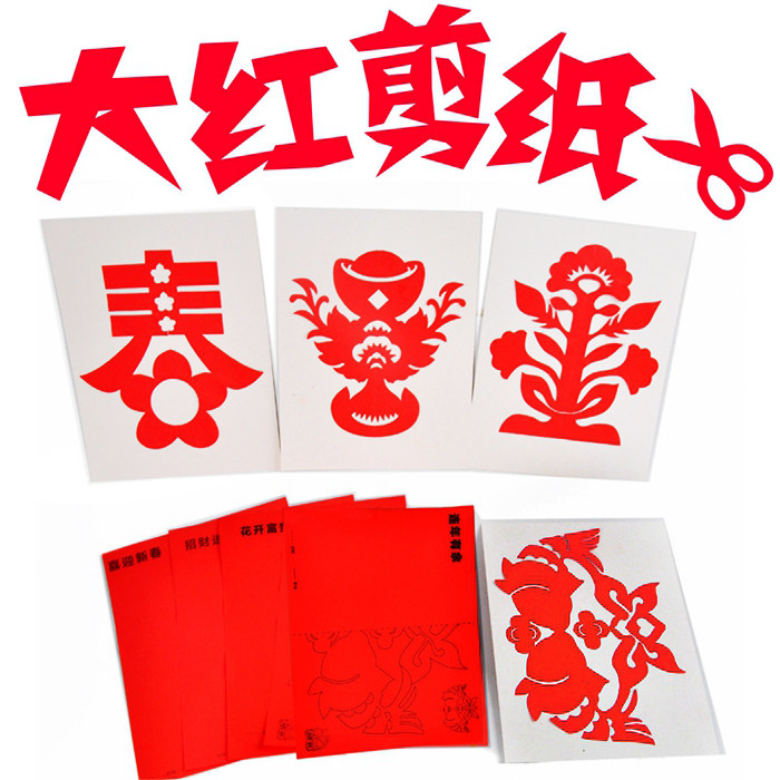 Xibao New Year Spring Festival festive red paper-cut kindergarten classroom home decoration handmade DIY materials