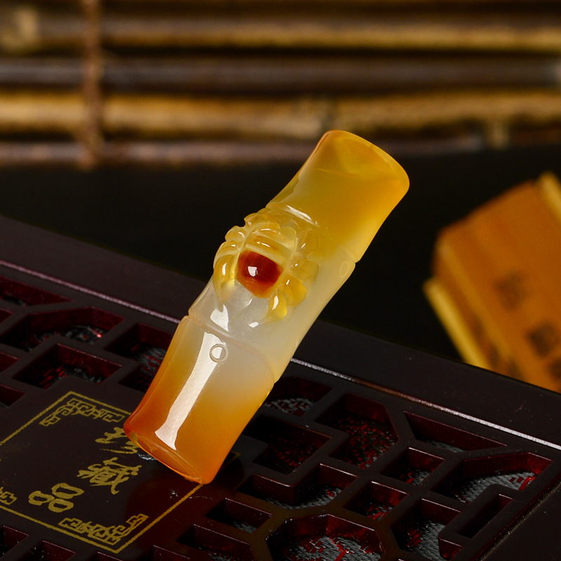 Natural white chalcedony Bamboo pendant Bamboo high agate jade pendant Sweater chain pendant