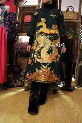 Cloud decoration totem original design women's top ethnic style old embroidery plate gold embroidery dragon middle sleeve medium and long version women's top