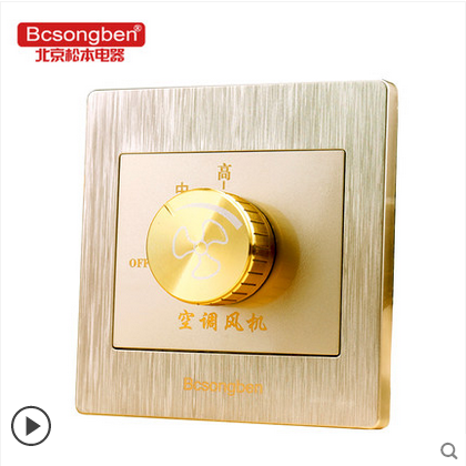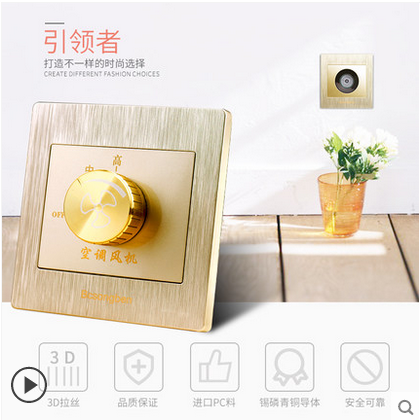 Type 86 wall drawing gold central air conditioning ventilator thermostat 3-speed wall three-gear ventilator throttle switch panel