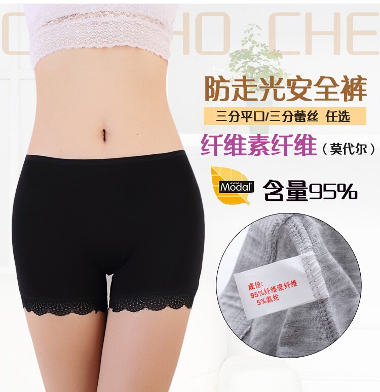 Summer modal anti-light safety pants women's boxer three-point lace edge leggings short safety underwear thin