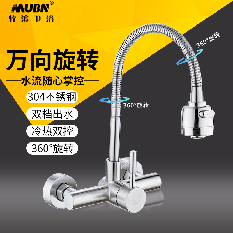 304 stainless steel kitchen sink faucet into wall single - hole double - hole wash basin to cold and hot water mixing valve