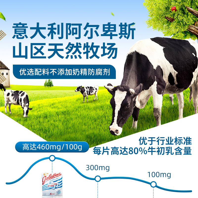 Italian Gallatin milk tablets Children's snacks snacks Dry eating high calcium milk tablets Sugar containing colostrum milk shellfish