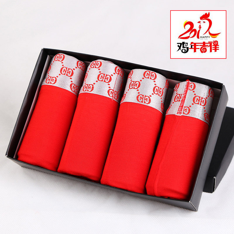4 packs of lucky zodiac year men's big red boxer underwear pure cotton low-waist boxer pants festive youth underwear men