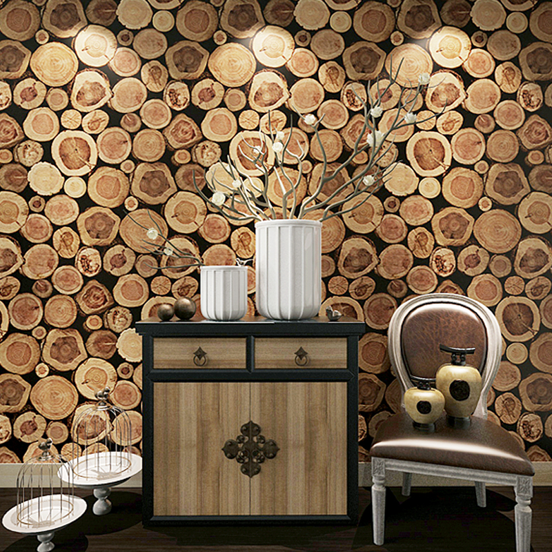 Wallpaper non-self-adhesive without glue without back glue brush glue home imitation wood grain wood plank log color 3d three-dimensional wallpaper
