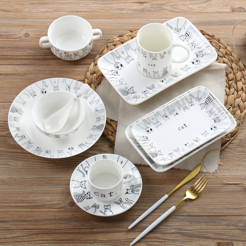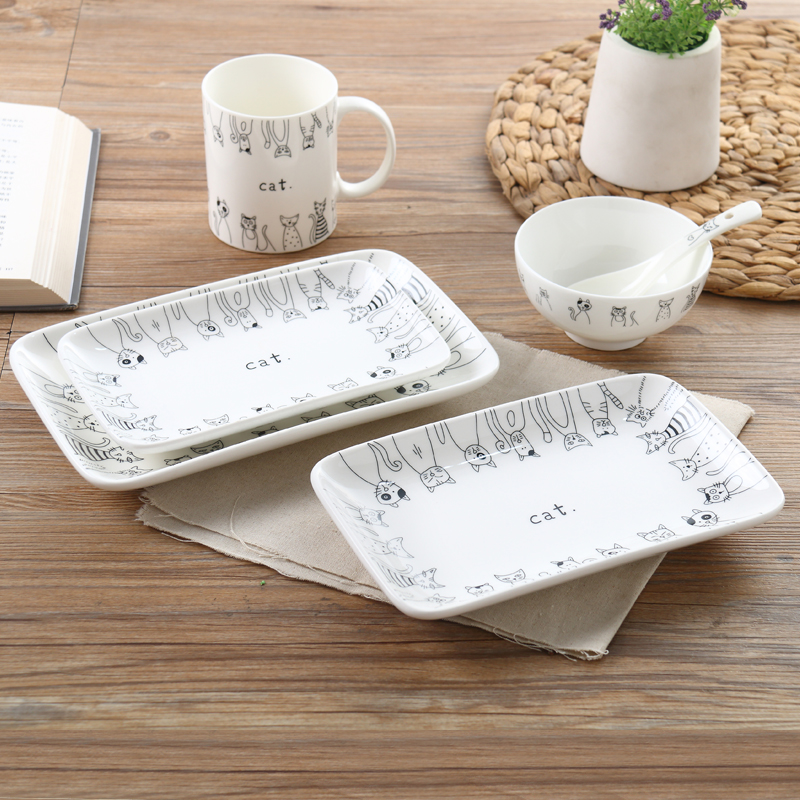 Western plate creative ceramic tableware cartoon cat plate snack plate steak plate household plate rectangular plate