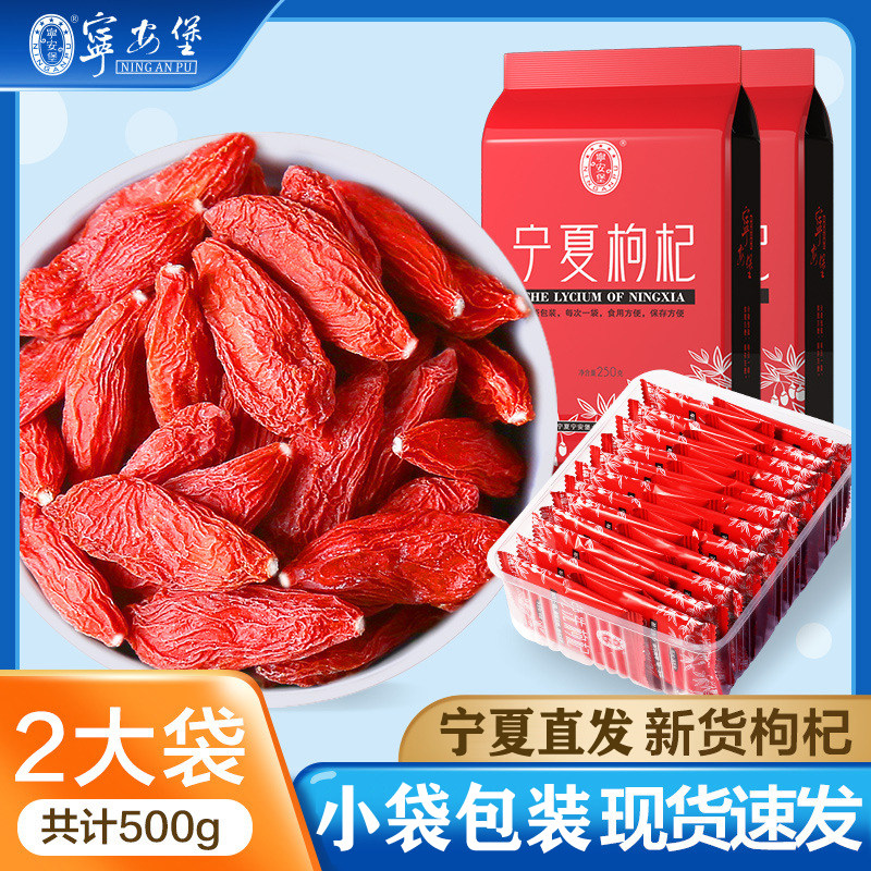 New goods Ning'anbao Ningxia Zhongning wolfberry Special 500g free wash-in small bags 2 large packets of red Wolfberry