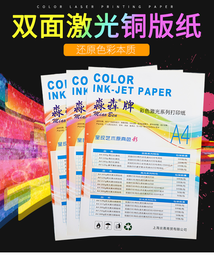 Double-sided high-gloss matte coated paper A4 128g 157g 200g 250g 300g laser copperboard paper A3 color laser printing paper color matte paper