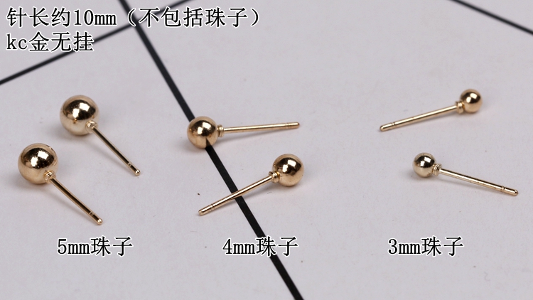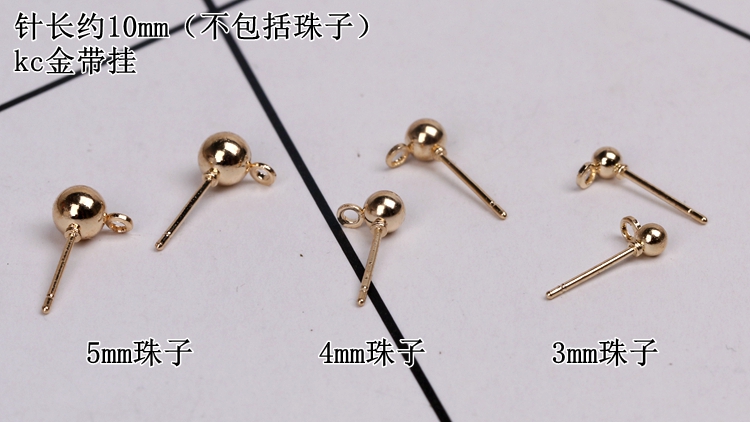 1#KC金 3MM珠子带挂(10个)-e135 2#KC金 4MM珠子带挂(10个)-e136 3#KC金 5MM珠子带