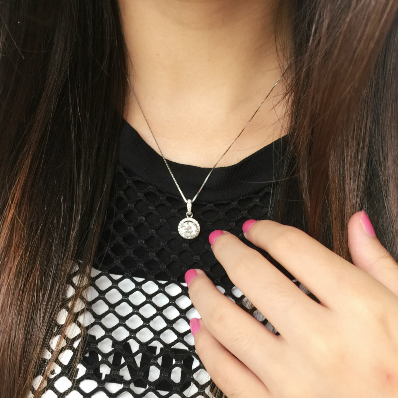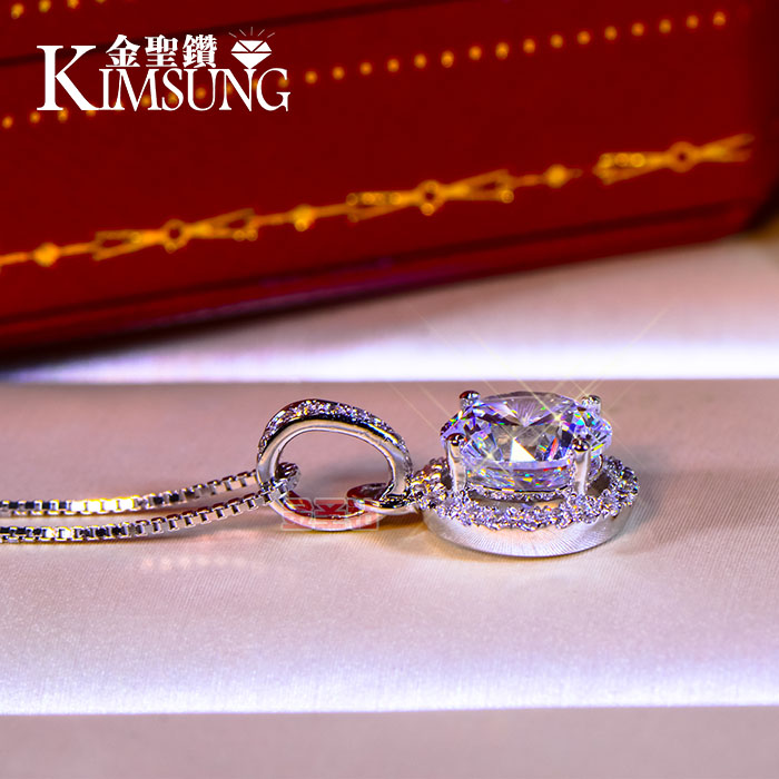 Four-claw luxury four-claw surround diamond 1 carat Mosan stone pendant Women's simulation diamond necklace Fashion sterling silver clavicle chain