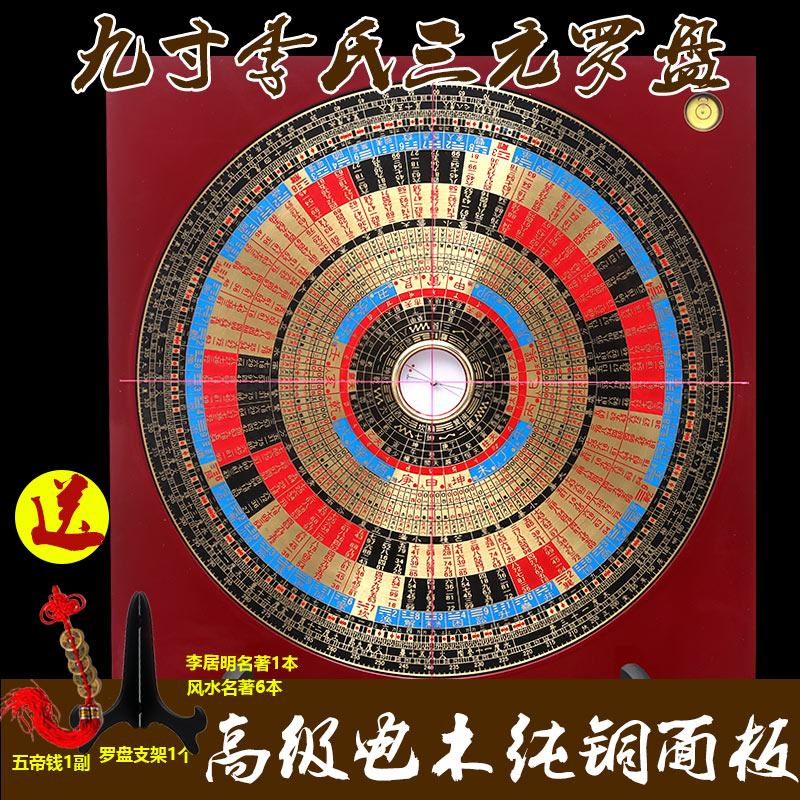 The new version of Lee's three-yuan compass 9 inch Li Juming professional Blue Xuankong flying star pure copper compass instrument