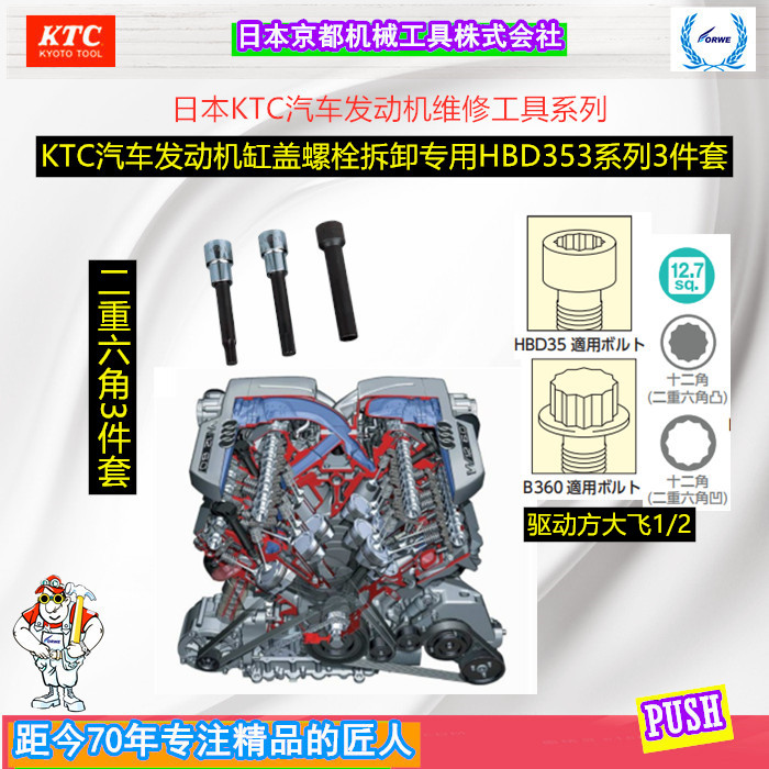 Japan KTC imported automobile engine cylinder head bolt big fly 12 groups of 3 pieces of screw sleeve angle inner sleeve