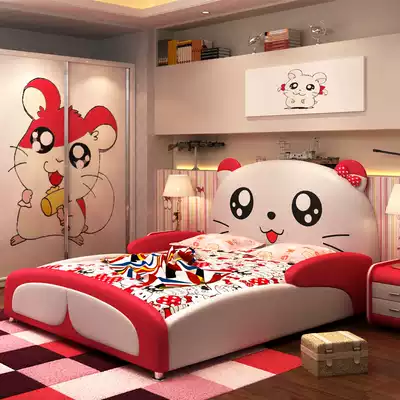 Creative cartoon children's bed Girl 1 5 meters with guardrail bed Boy 1 2 meters single bed bedroom princess bed