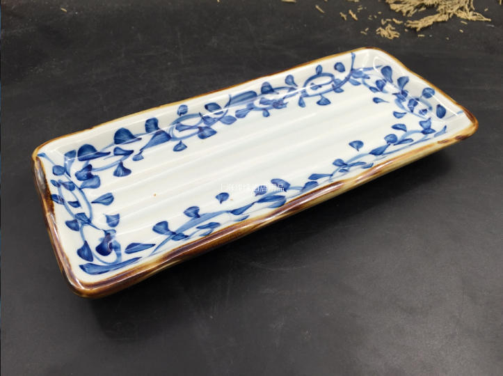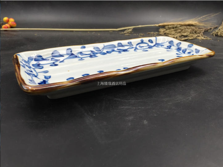 Japanese creative ceramic tableware flat plate sushi plate long angle plate long plate plate dumpling plate Japanese food tableware