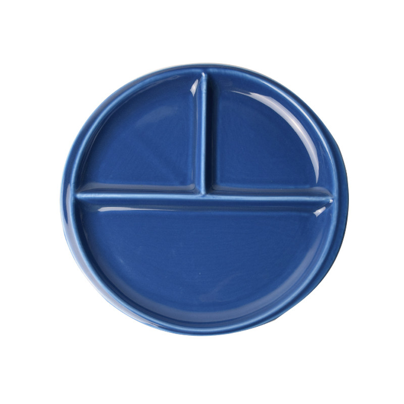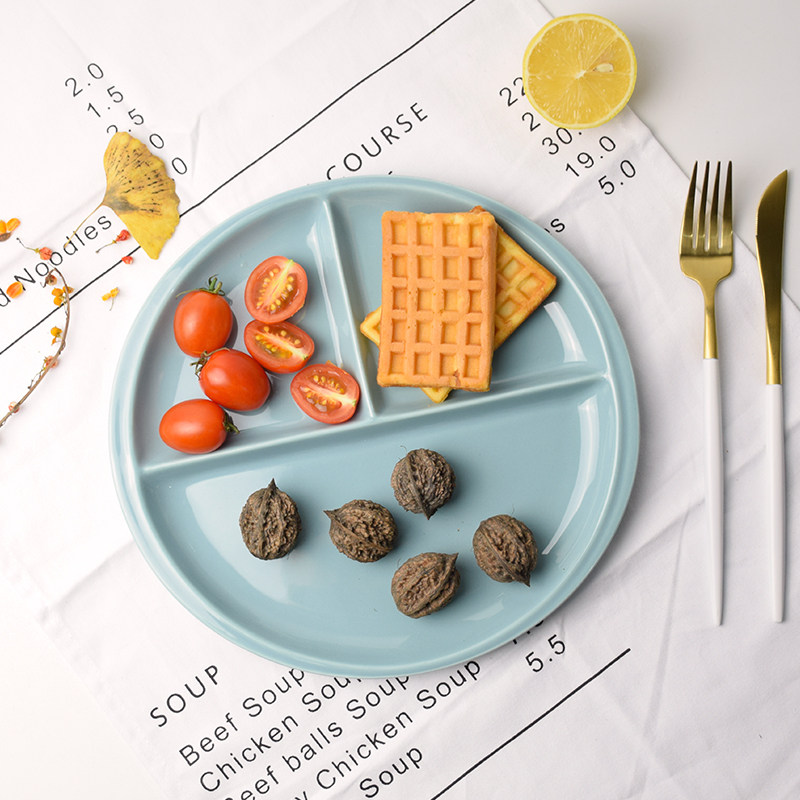 Japanese breakfast plate ceramic divider plate creative Western food plate Round three-grid dim sum plate student tableware