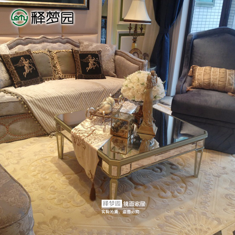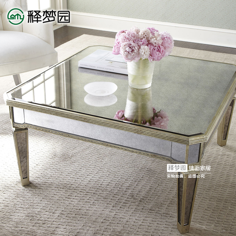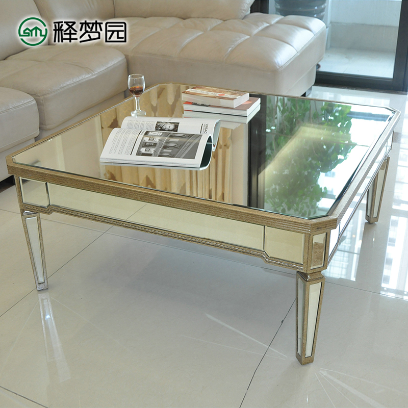 Export boutique coffee table glass coffee table coffee table mirror furniture European antique gold 0810