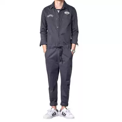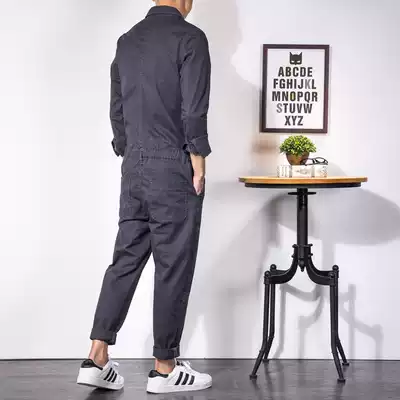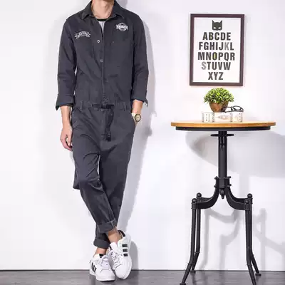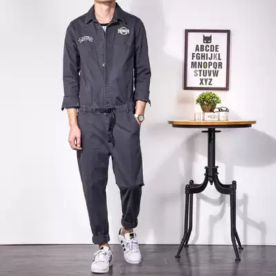 Spring and Autumn Tide men's personality overalls Japanese retro simple casual jacket set Korean couples jumpsuit