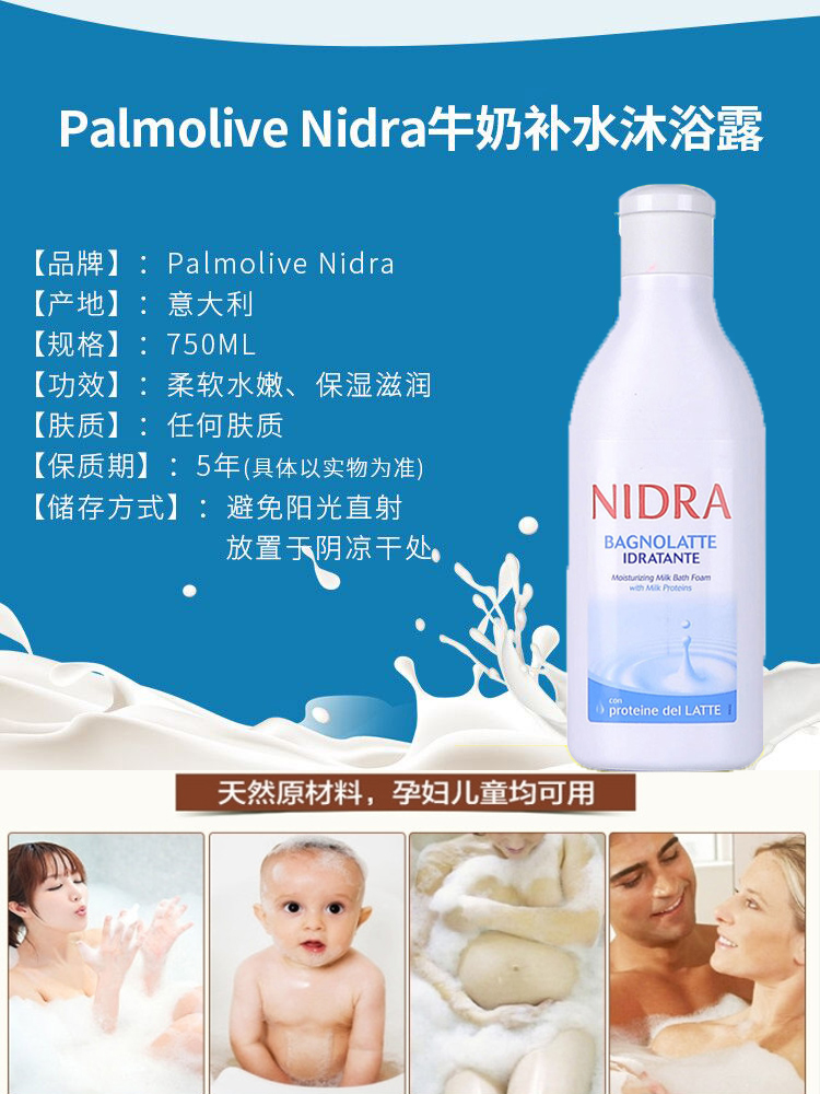 Year-end promotion Italian Palmolive Nidra moisturizing milk shower gel 750ml long-lasting fragrance