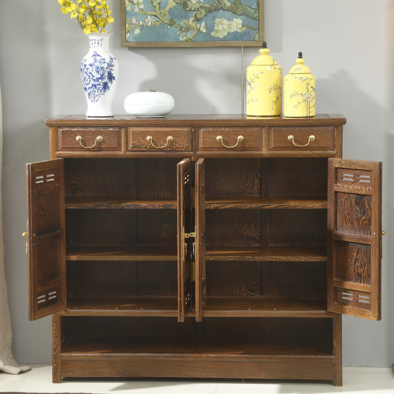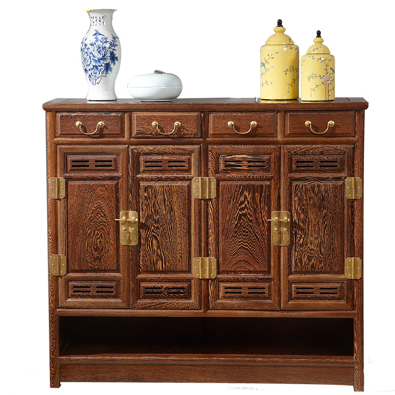 Wenge wood shoe cabinet log living room corridor two three four door hot wax shoe rack mahogany furniture new Chinese antique solid wood